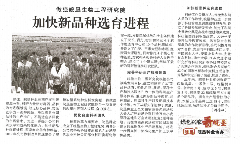 做強(qiáng)皖墾生物工程研究院 加快新品種選育進(jìn)程